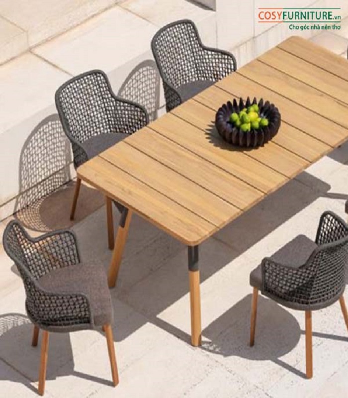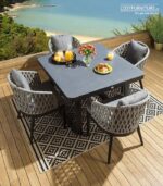 Alu-Steel Dining Set With Teak-Acacia Table Top