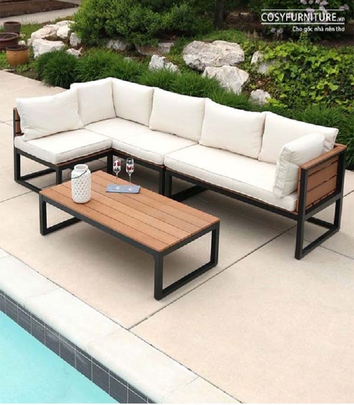 Steel Sofa Set With Teak Wood